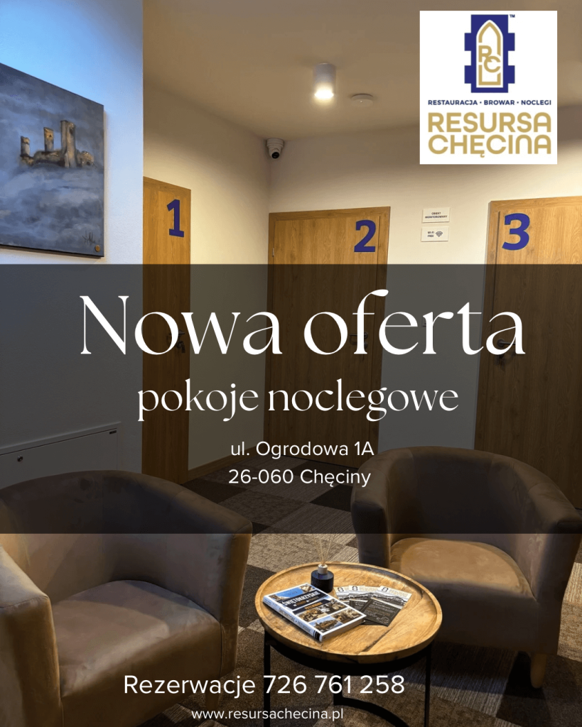 Kameralny klimat, wygodne, przestronne, nowocześnie urządzone pokoje to niepodważalny atut Resursa Chęcina. Idealne rozwiązanie dla singli, par jak i rodzin z dziećmi. Czasem wszystko, czego potrzebujesz, to kawa, cisza i kawałek przestrzeni tylko dla siebie. Chwila oddechu i odpoczynku od zgiełku miasta i trudu codziennych obowiązków.